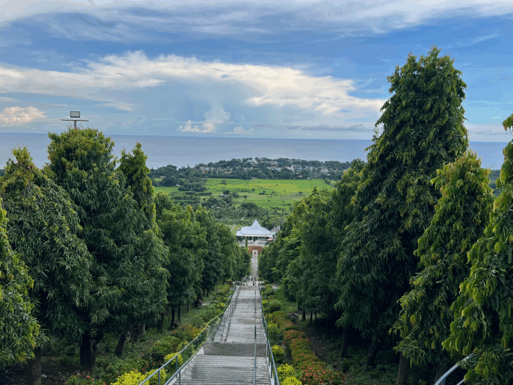 農業体験、アクティビティ、そして“天国への階段”と称される巡礼スポットが一体となったユニークなリゾートです。約480段の階段を登ると頂上に巨大な十字架が設置されており、山頂からは絶景のコーストラインを望むことができます。