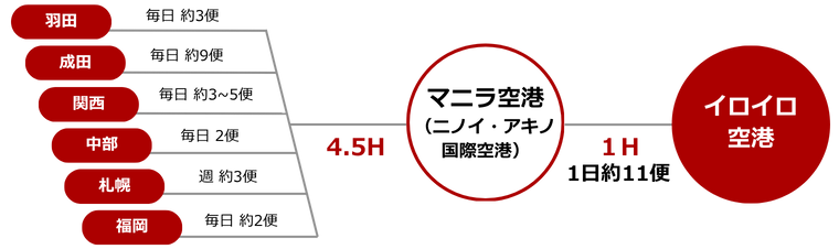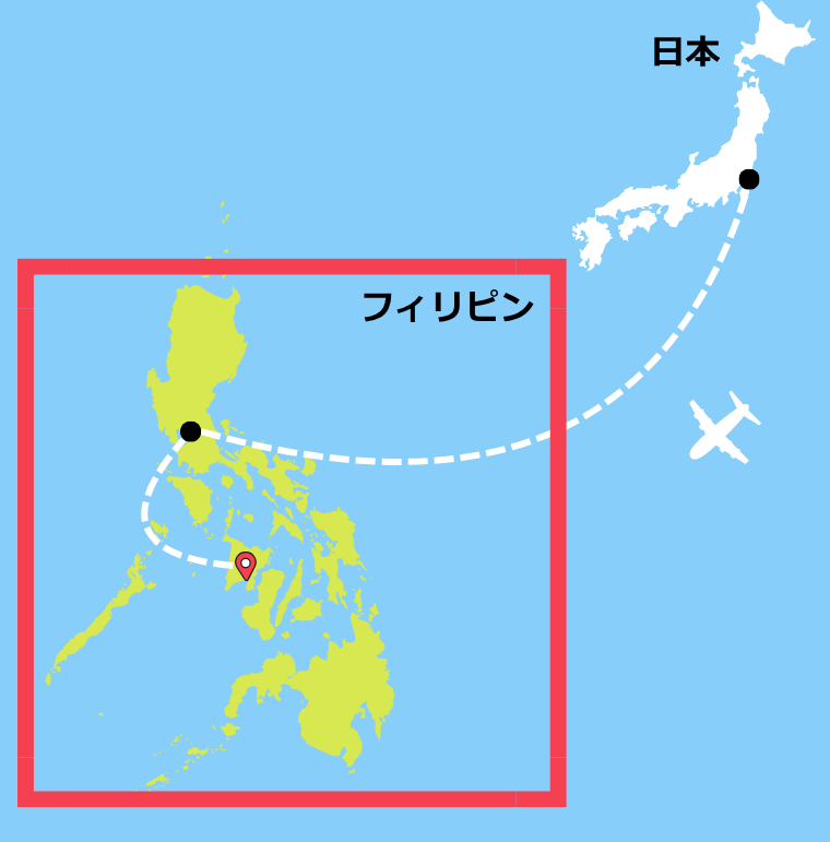 日本からの直行便はありませんが、首都マニラやセブを経由してアクセスできます。